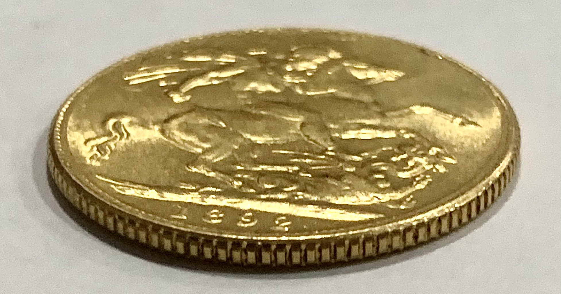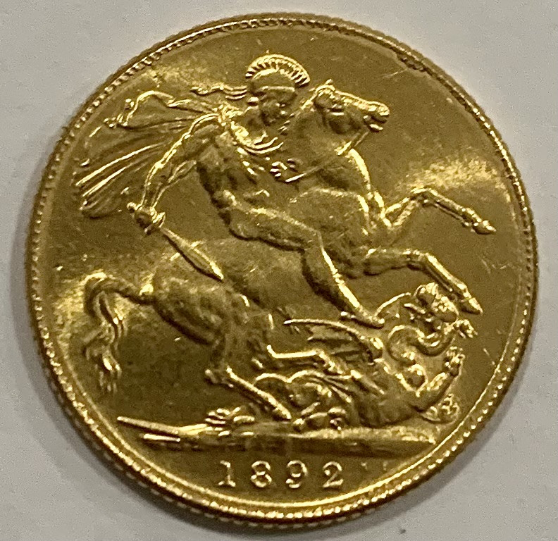 Moneta sterlina d’oro Regina Vittoria, moneta coniata nel 1892 per The Royal Mint, Zecca di Londra.