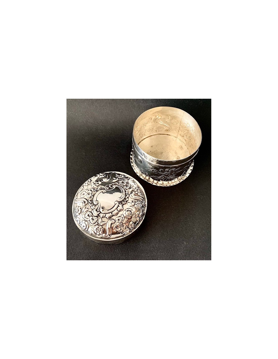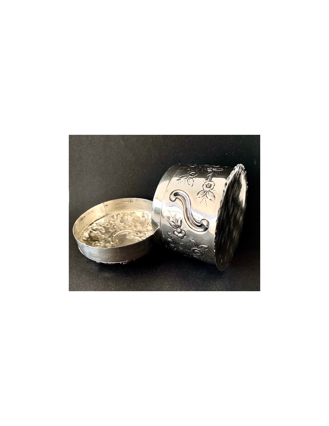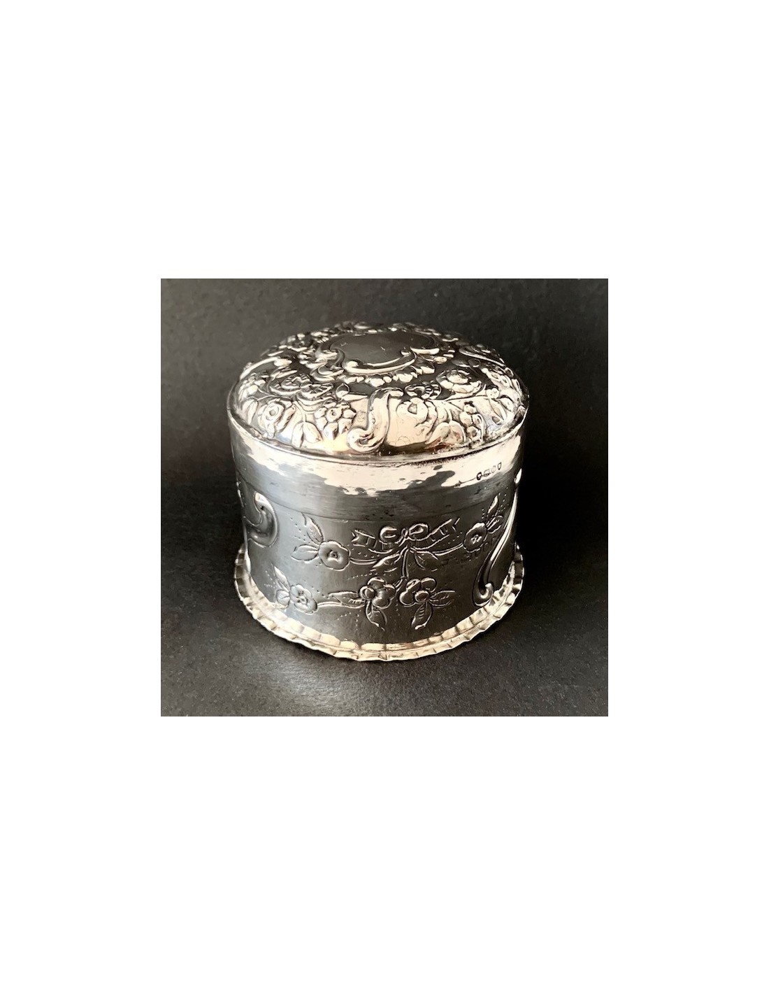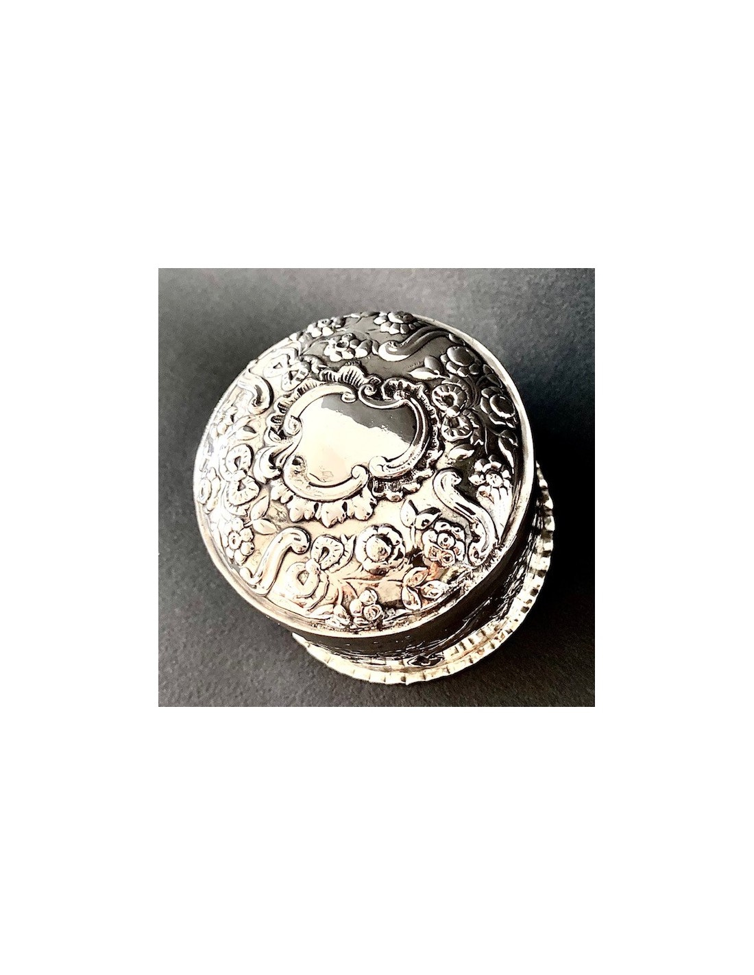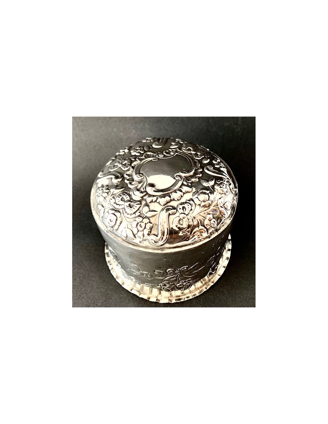 Scatola rotonda d’argento Sterling, Inghilterra XIX secolo