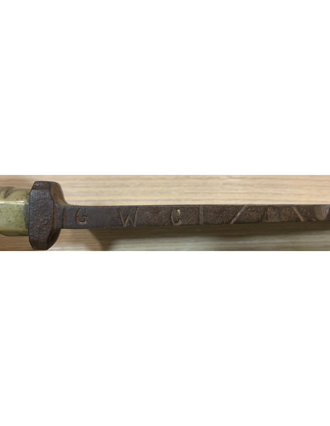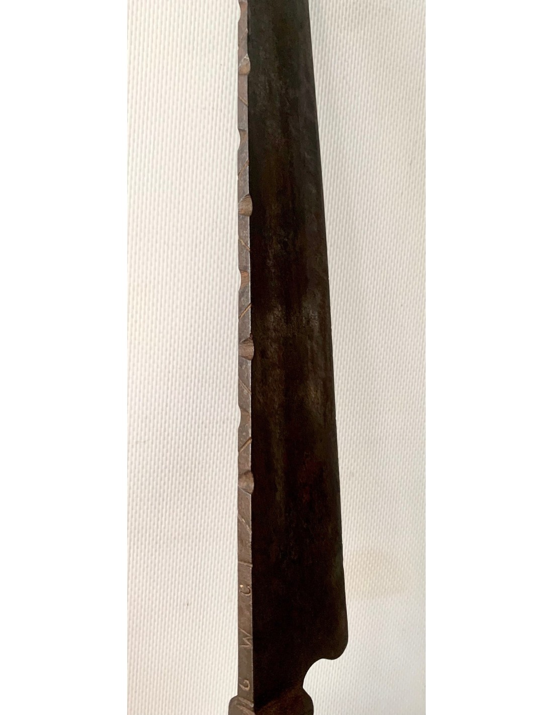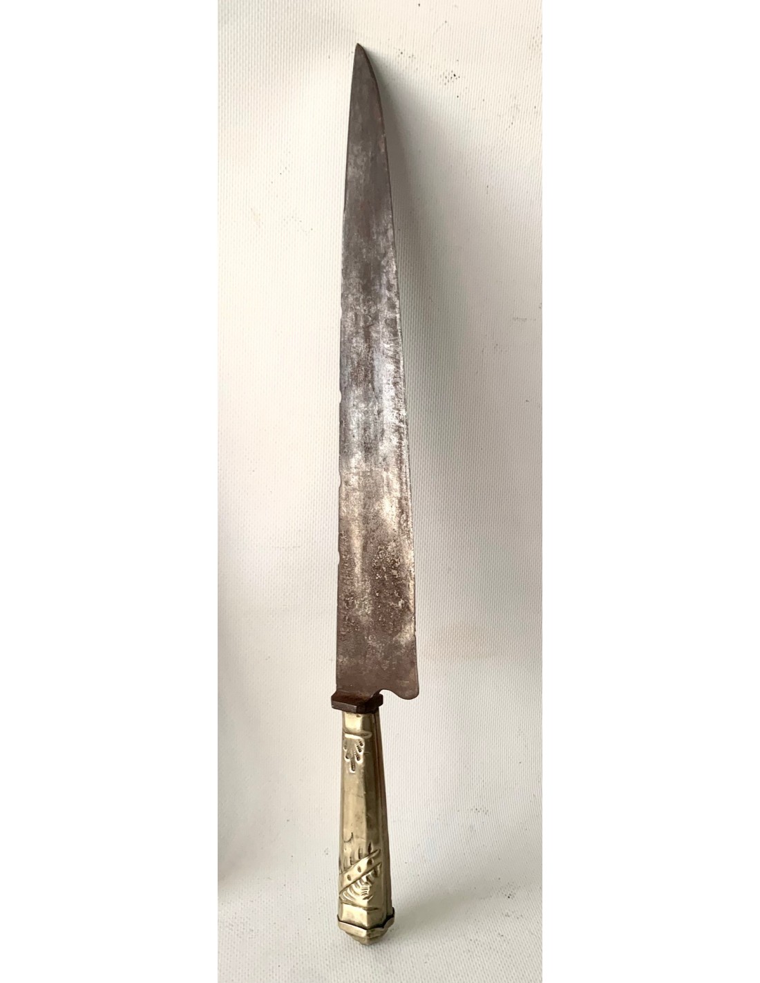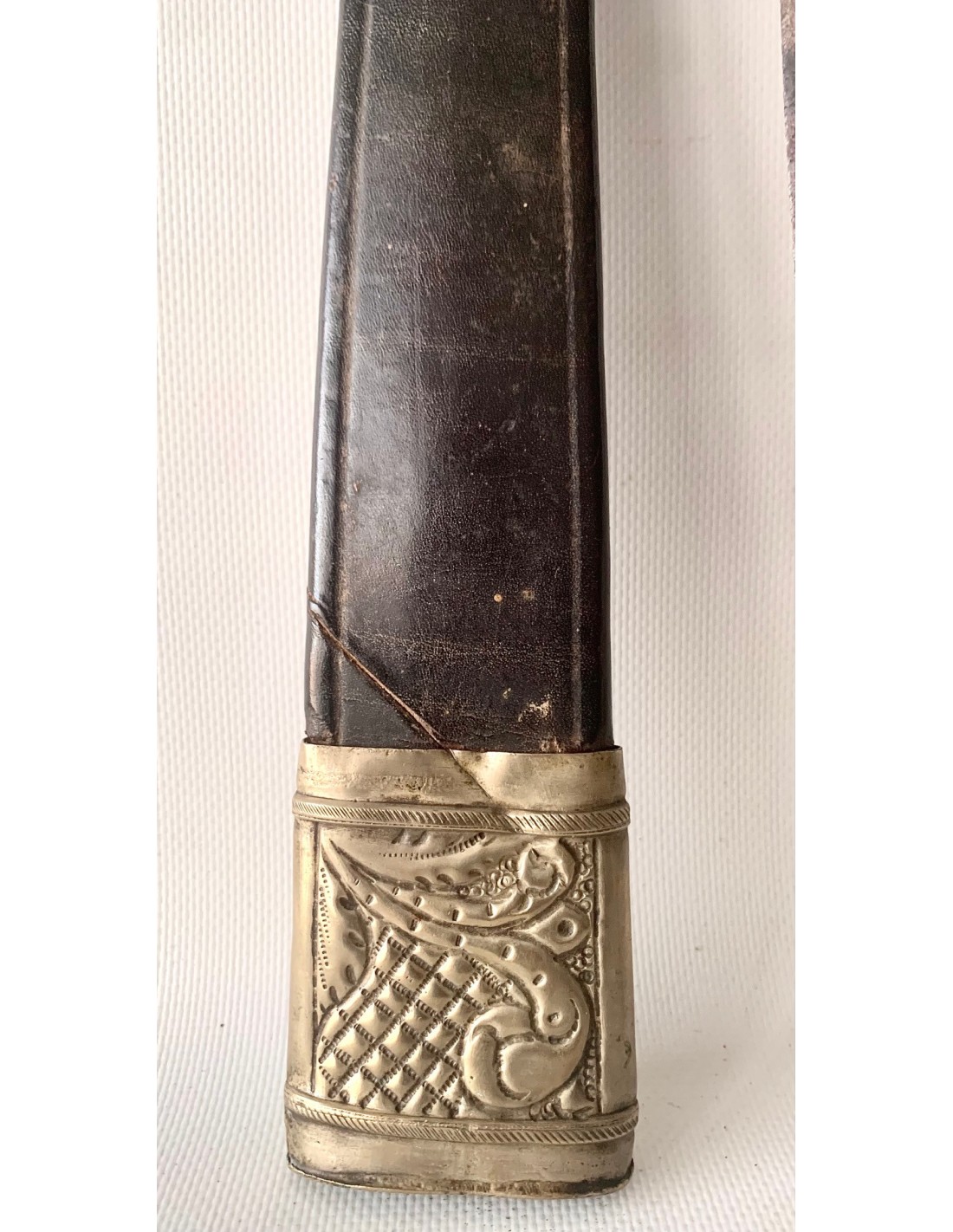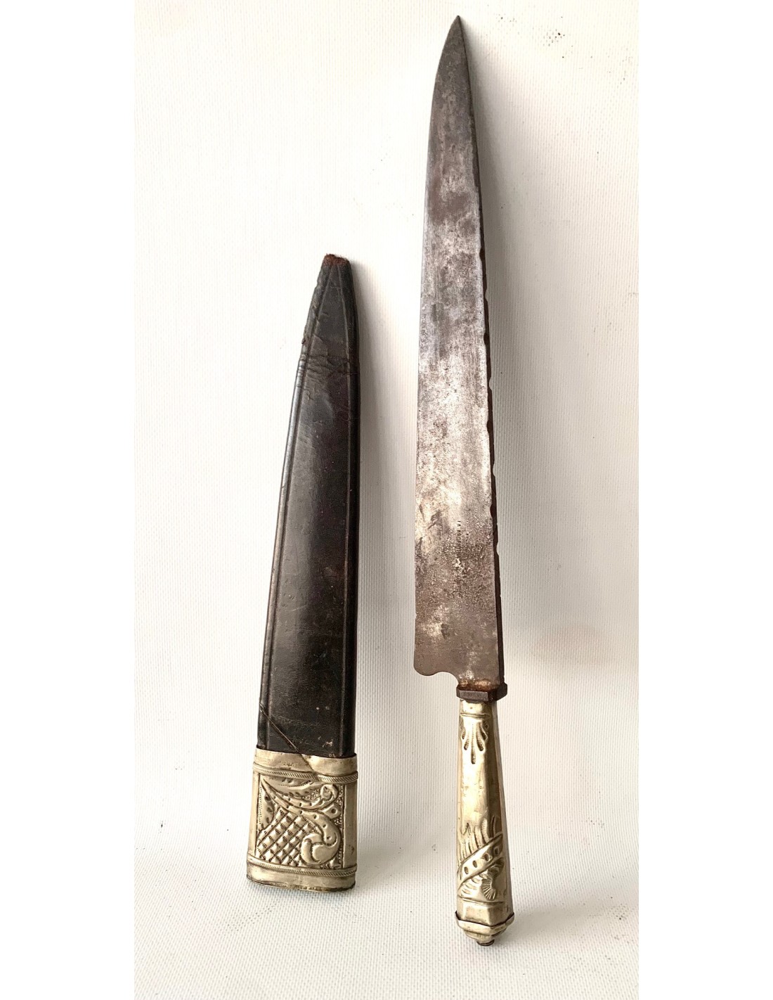 DIMENSIONI: Con fodero 46 x 7 cm. - coltello 45,5 x 5 cm. - lama 33 cm.