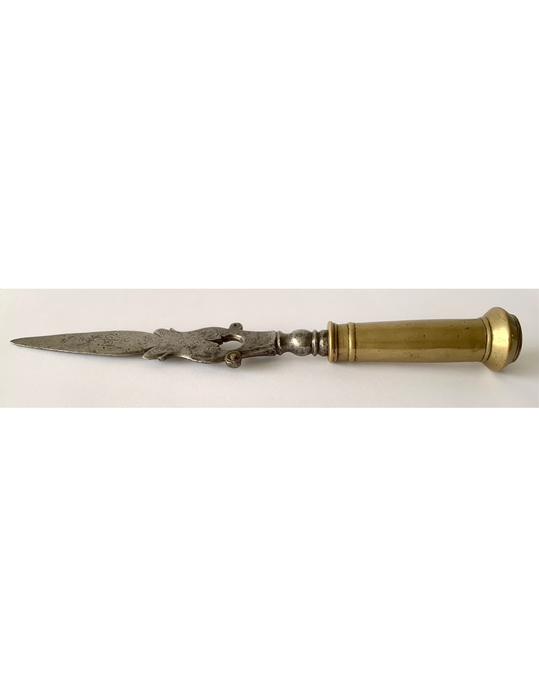 DIMENSIONI: lama 23,1 x 4,9 cm. - base di bronzo 35,4 cm.