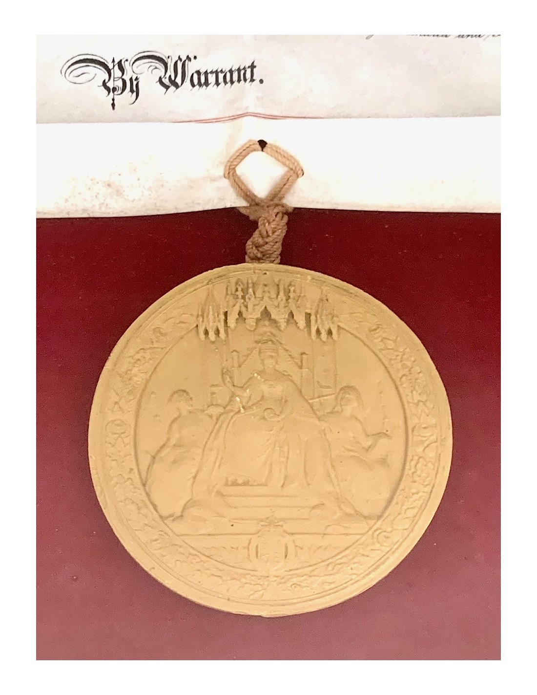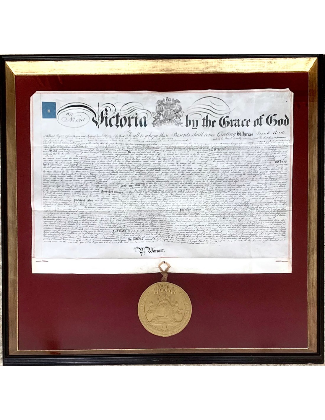 DIMENSIONI: Incorniciato 90 x 96,5 cm. - pergamena: alt. 52,5 x 77 cm. - sigillo: 16 cm. diametro